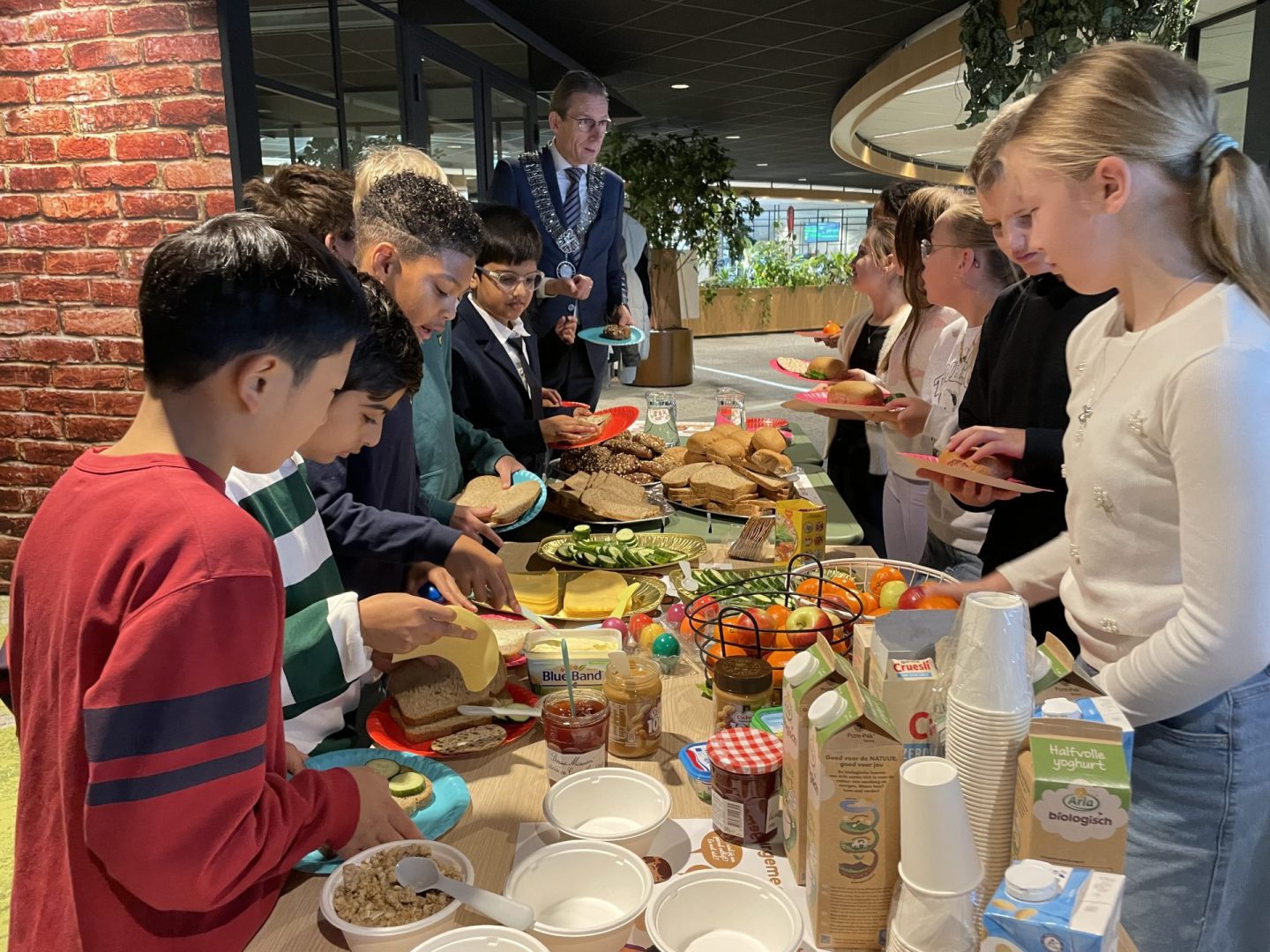 Donderdag (9 oktober) schijnt het ontbijt op het raadhuis te hebben plaats gevonden met leerlingen van groep 7 van basisschool Willem-Alexander.