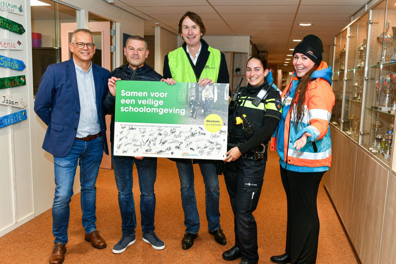 Maandagochtend nam wethouder Herbert Raat (verkeer) de ‘afsprakenkaart’ in ontvangst op basisschool De Triangel in Westwijk. De school doet mee aan het project Veilige Schoolomgeving en werkt samen met Veilig Verkeer Nederland (VVN) en de gemeente om de verkeersveiligheid rondom de school te verbeteren. Bijvoorbeeld door ouders en kinderen te stimuleren vaker lopend of op de fiets naar school te komen, zodat de verkeersdrukte verminderd. Ook worden er in de directe omgeving van de school enkele verkeersmaatregelen doorgevoerd.