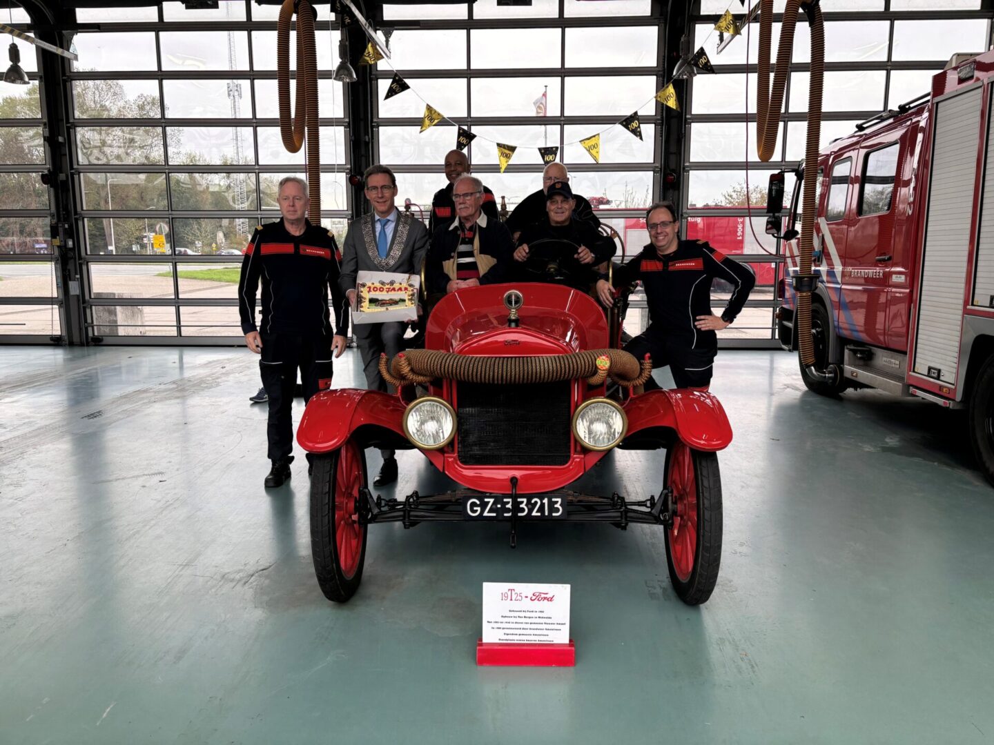 Woensdag (29 oktober) was het historische brandweervoertuig, een T Ford uit 1925, 100 jaar oud. Burgemeester Tjapko Poppens kwam, uiteraard zonder media op de hoogte te stellen, langs voor deze verjaardag.