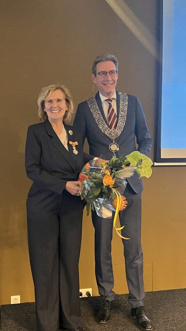 Vrijdag (31 oktober) ontving Prof. Dr. Esther Middelkoop een Koninklijke Onderscheiding uit handen van burgemeester Tjapko Poppens. Bij haar afscheid als bijzonder hoogleraar huidregeneratie en wondgenezing aan het Amsterdam UMC werd zij benoemd tot Officier in de Orde van Oranje-Nassau, als erkenning voor haar uitzonderlijke bijdrage aan de medische wetenschap, de brandwondenzorg en de samenleving.